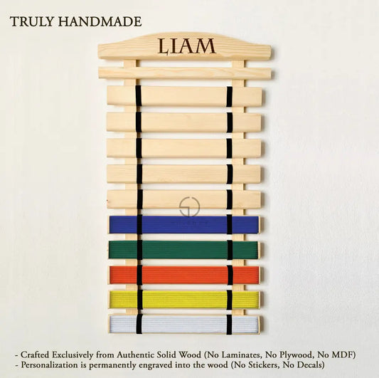 Personalized Karate Belt Display Rack – Custom Engraved Martial Arts Belt Holder for Taekwondo, Jiu-Jitsu, Judo & BJJ | Holds 5–18 Belts
