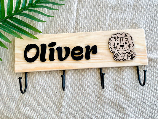 Personalized Safari Animal Coat Rack: Jungle Animals Wooden Nursery Wall Hooks