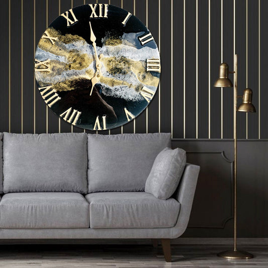 Resin Wall Clock 13.4", Black & Gold, Black Silver Resin Wall Art, Unique Home Decor First Home Gift Black Gold Silver Copper Resin Wall Art