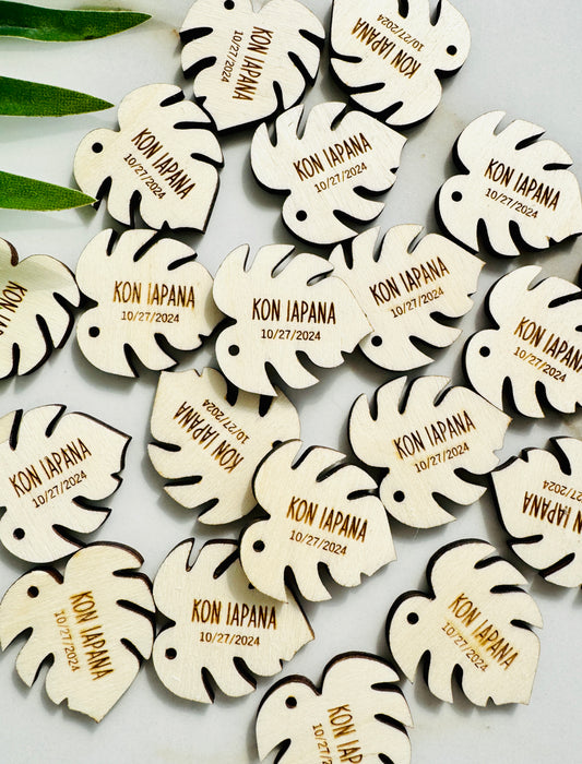 Monstera Leaf Wedding Favor Tags: Personalized Wood Name Tags