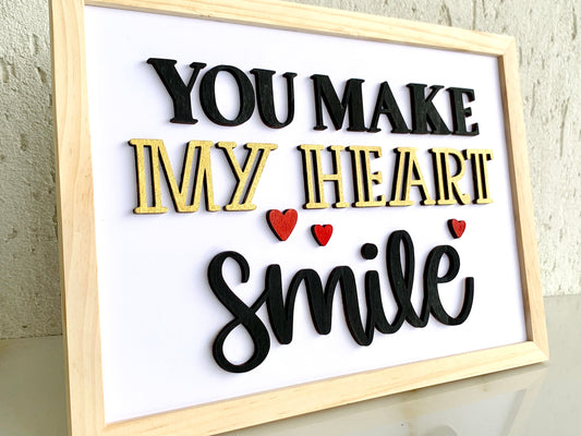 Love Wood Sign: 3D 'You Make My Heart Smile' Framed Wall Art