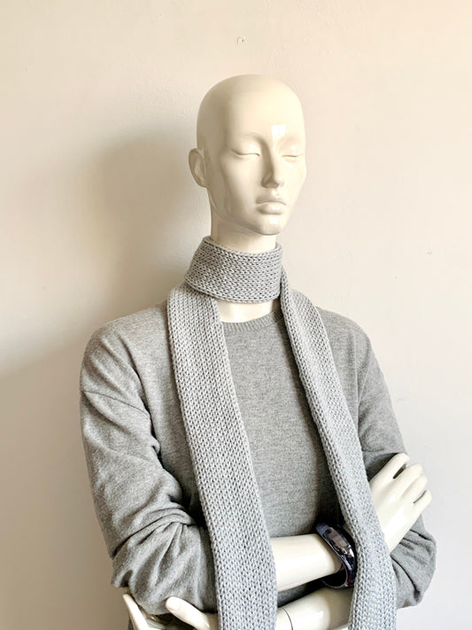 Skinny Knit Scarf Sparkling Light Grey Silver Skinny Scarf, Handmade Gray Long Scarf Tie, Double Sided Thin Scarf, Women Knitted Scarves