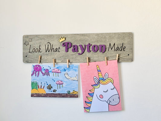 Letrero personalizado para exhibir arte infantil: Decoración de madera para habitación infantil, "Mira lo que hice"