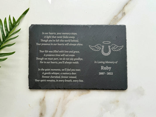 Lápida conmemorativa personalizada para mascotas: Placa de pizarra grabada con soporte