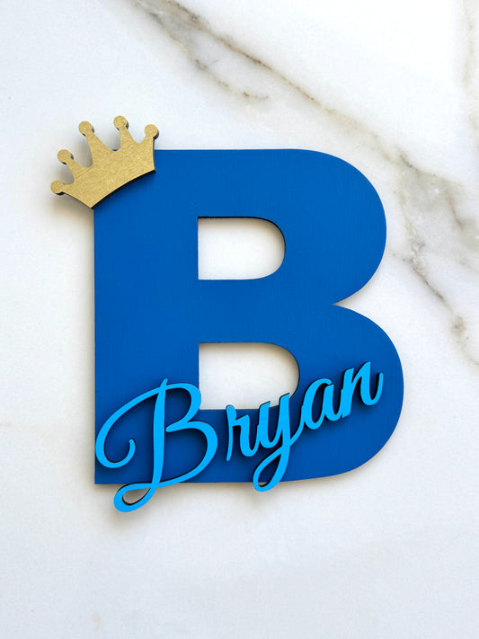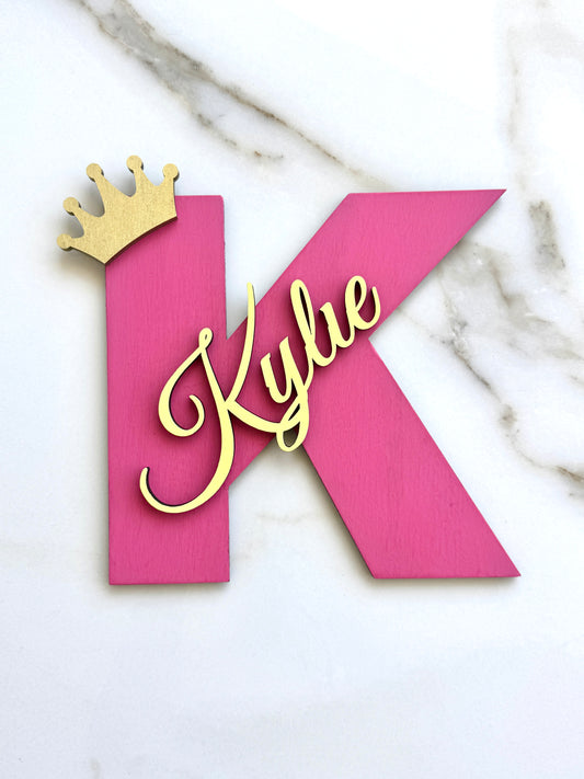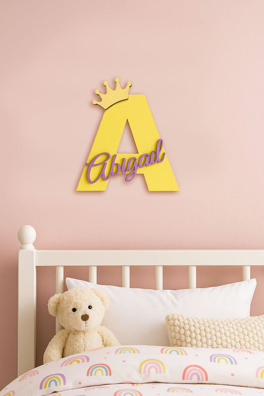 Letrero personalizado de madera con inicial: Decoración de pared para habitación infantil con corona