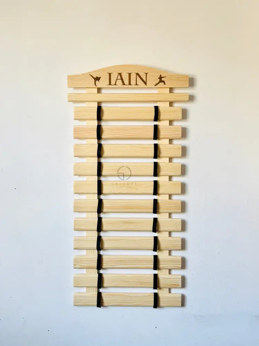 Exhibidor personalizado para cinturones de karate: Organizador de madera maciza para artes marciales, taekwondo, jiu-jitsu y bJJ.