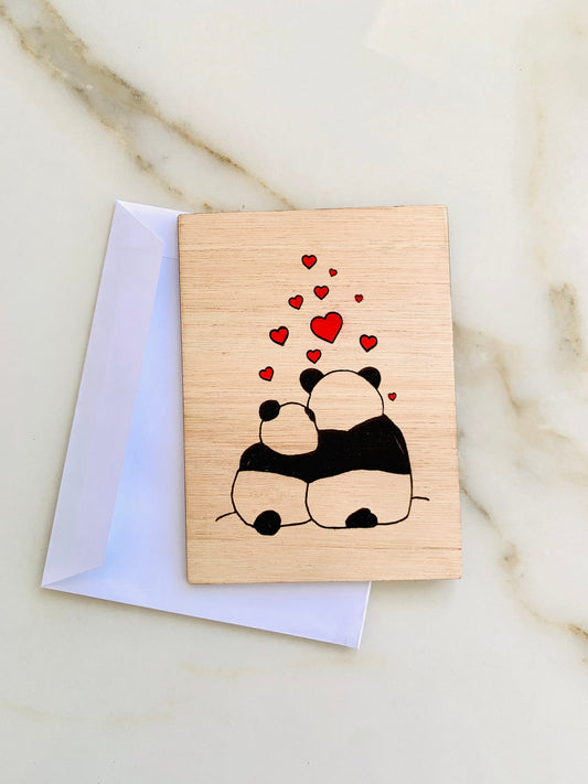 Tarjeta de felicitación personalizada de madera con panda | Nombres personalizados | Mensaje grabado | Perfecta para San Valentín, aniversarios y cumpleaños