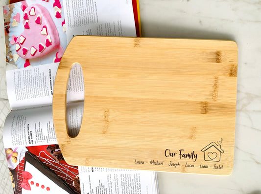 Tabla de cortar de bambú personalizada: Regalo con nombre familiar grabado