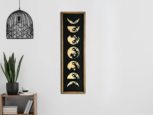 Adorno de pared con fases lunares: Decoración celestial rústica en negro y dorado