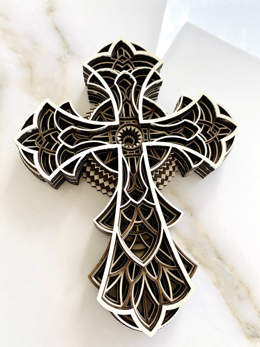 Cruz de madera con mandala en capas 3D: Decoración rústica cristiana para pared