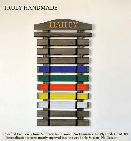 Exhibidor personalizado para cinturones de karate – Soporte de madera a medida para cinturones de artes marciales | Idea de regalo para practicantes de taekwondo, judo y karate