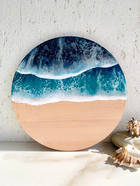 Tabla de cortar de resina personalizada con diseño oceánico: Tabla de quesos de madera grabada, arte mural