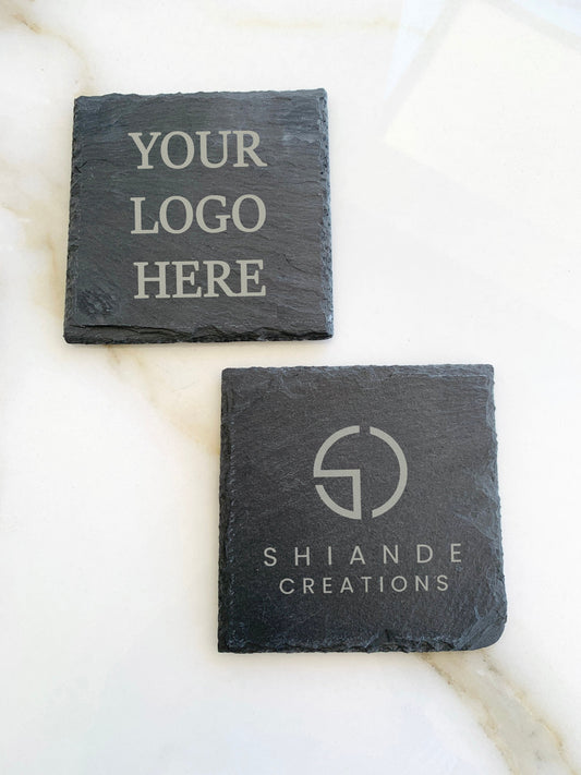 Posavasos de pizarra con logotipo personalizado: Regalos corporativos, artículo promocional (4x4 pulgadas)