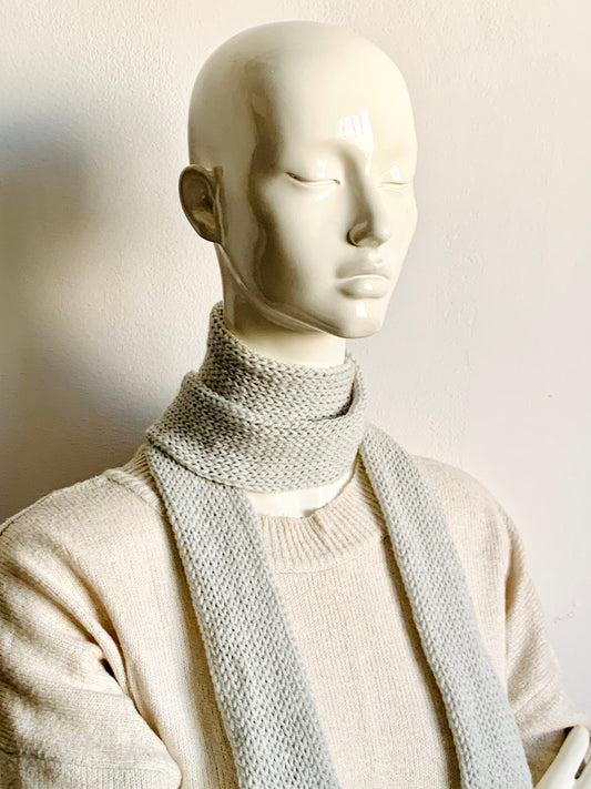 Bufanda estrecha, bufanda estrecha de punto color crudo, bufanda larga gris claro hecha a mano, bufanda fina de doble cara color crema, bufandas de punto para mujer