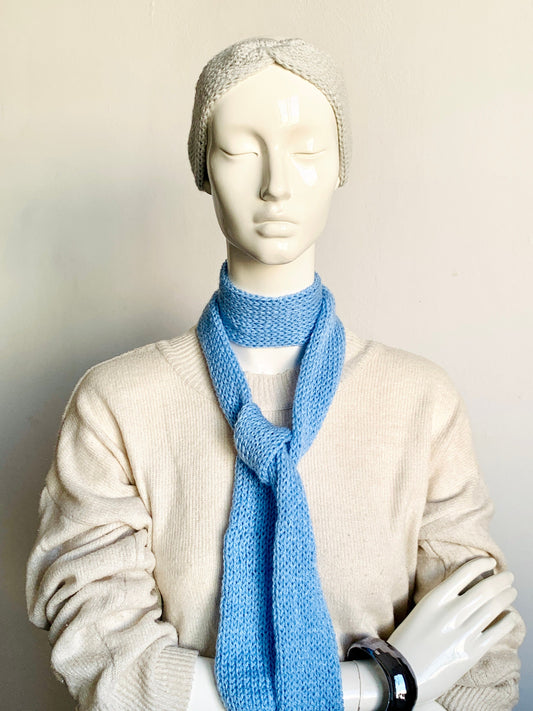 Bufanda estrecha, bufanda estrecha de punto azul celeste, bufanda larga azul claro hecha a mano, bufanda fina de doble cara turquesa, bufandas de punto para mujer