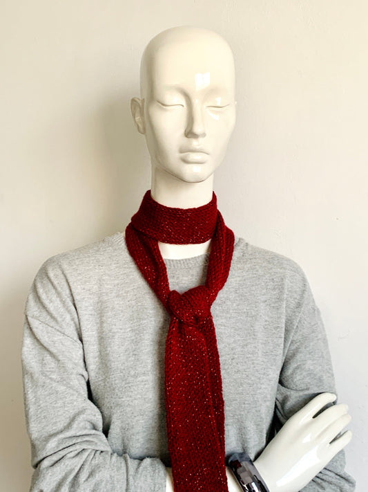 Bufanda fina, Bufanda fina de punto color burdeos brillante, Bufanda larga color burdeos hecha a mano, Bufanda doble fina color rojo vino burdeos, Glamurosa y elegante