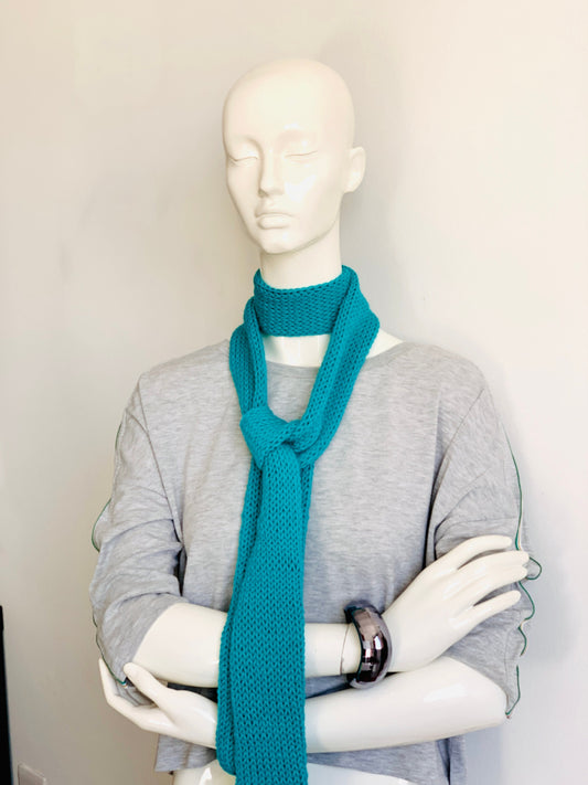 Bufanda estrecha, bufanda estrecha de punto turquesa, bufanda larga azul celeste hecha a mano, bufanda tubular fina de doble cara azul menta, bufandas de punto para mujer