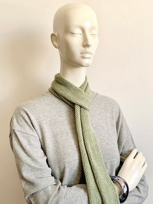 Bufanda fina, bufanda fina de punto verde pastel, bufanda larga verde pistacho hecha a mano, bufanda fina de punto de doble cara verde caqui para mujer