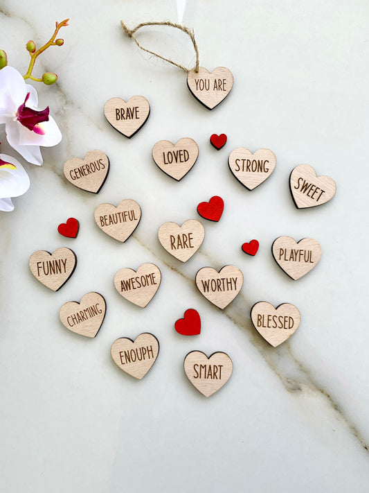 Corazones de madera con mensajes positivos: Regalo motivacional