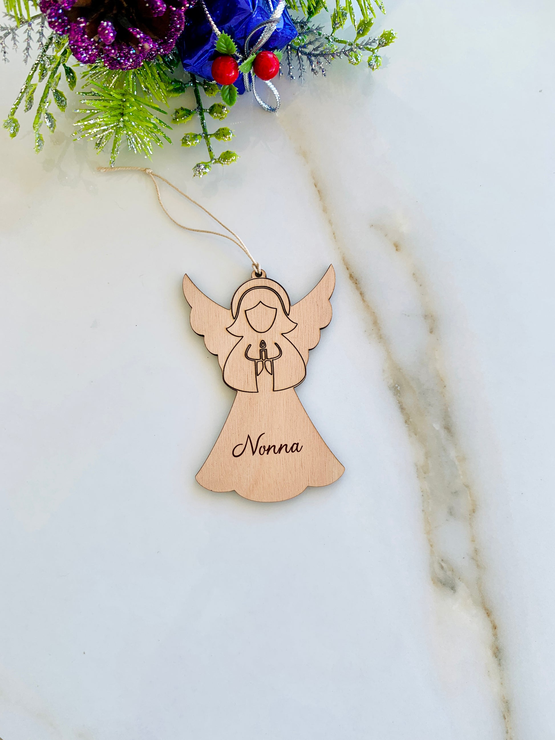 Angel Christmas Ornament Personalized, Angel Memorial Name Ornament, Custom Engraved Wood Ornament, Custom Family Xmas gift