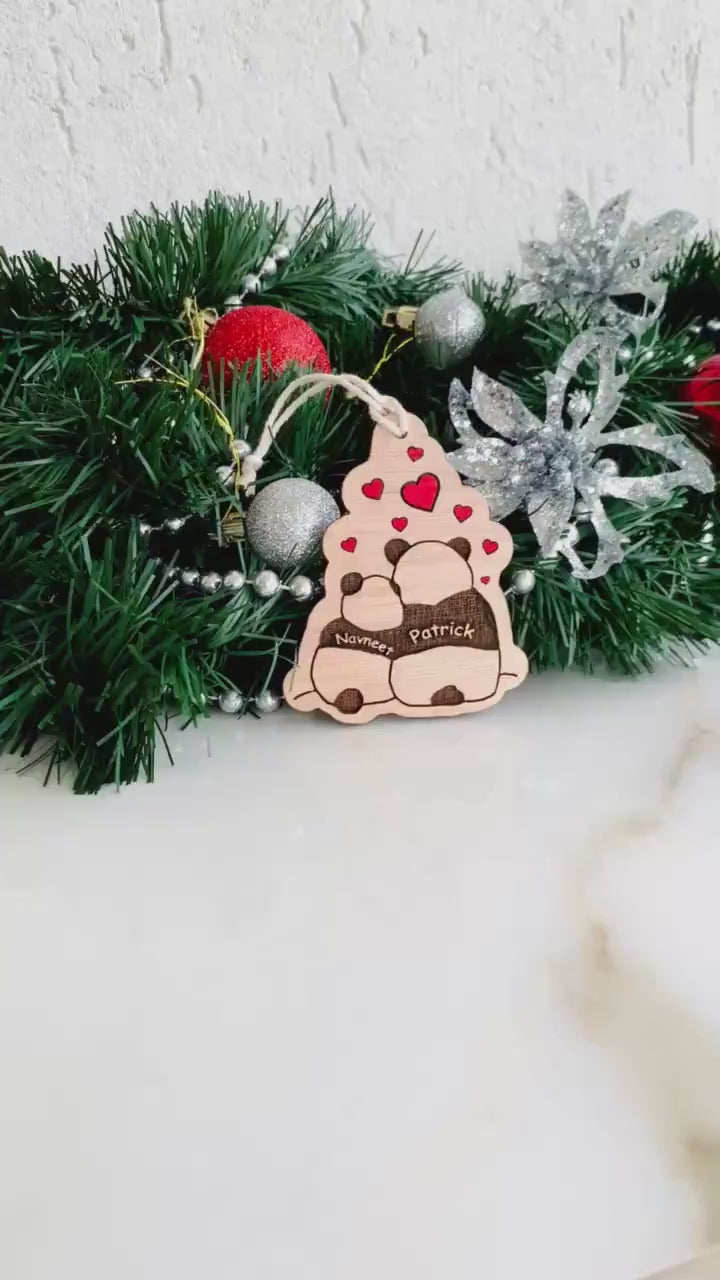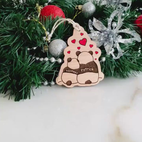 Personalized Panda Couple Ornament: Engraved Wood, First Christmas Together