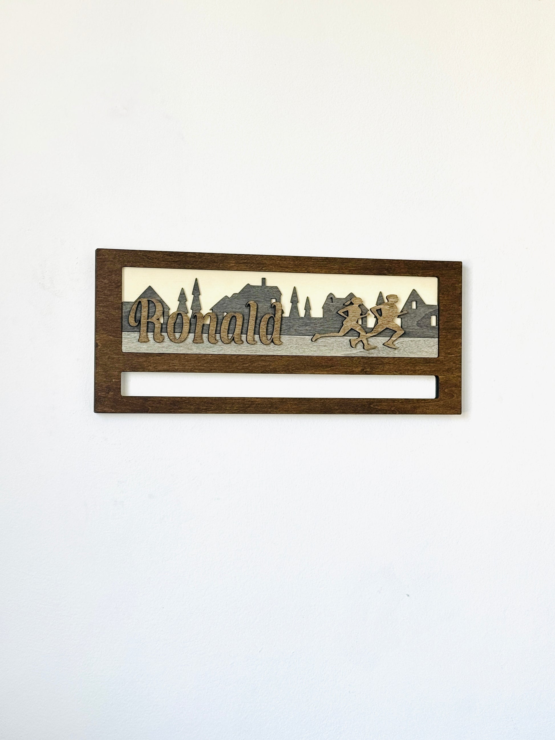 Personalized Running Medal Display Rack | Wooden Marathon Medal Holder | Race Award Wall Hanger Gift for Runners