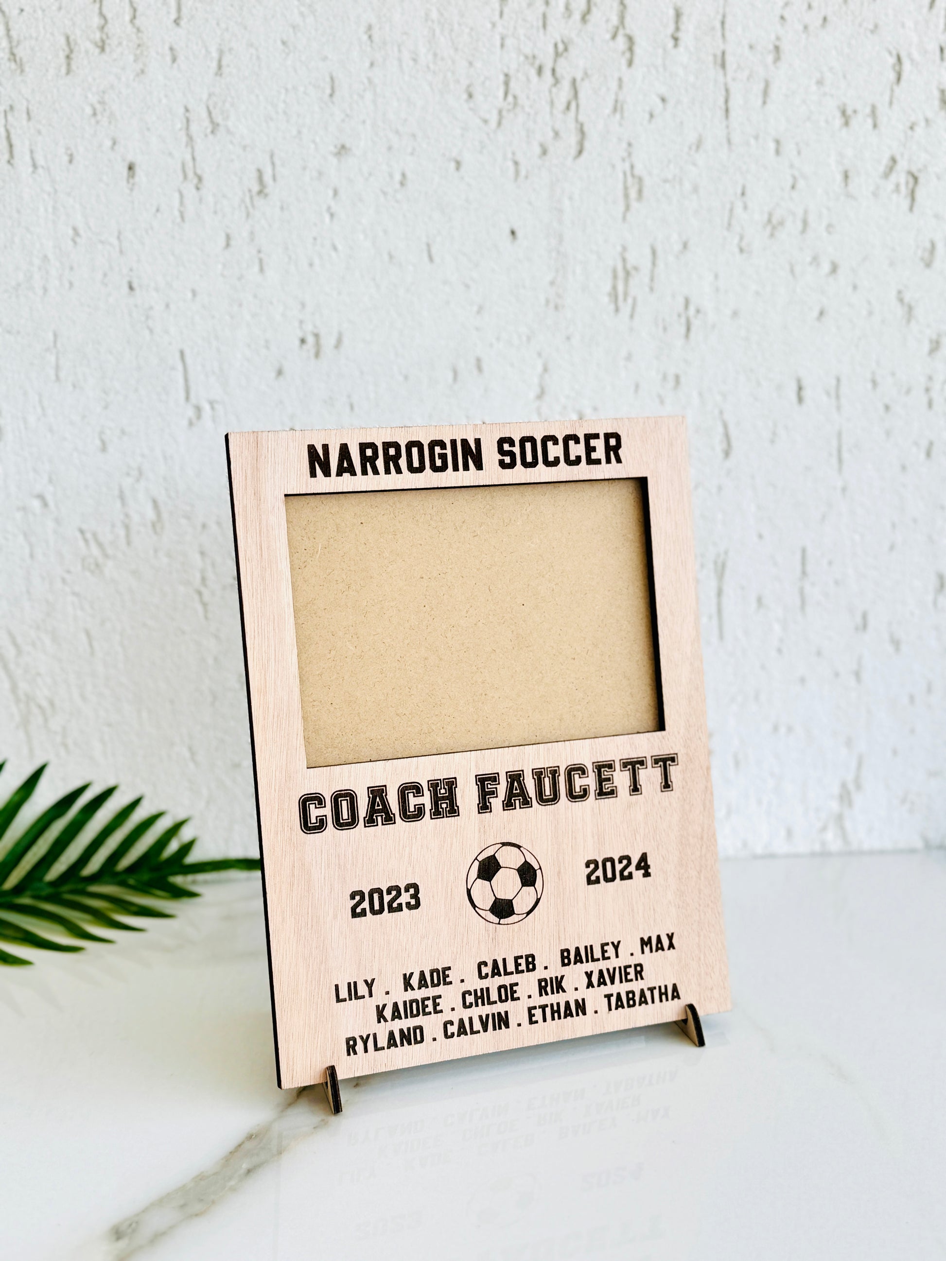 Personalized Soccer Coach Gift: Engraved Wooden Football Picture Frame