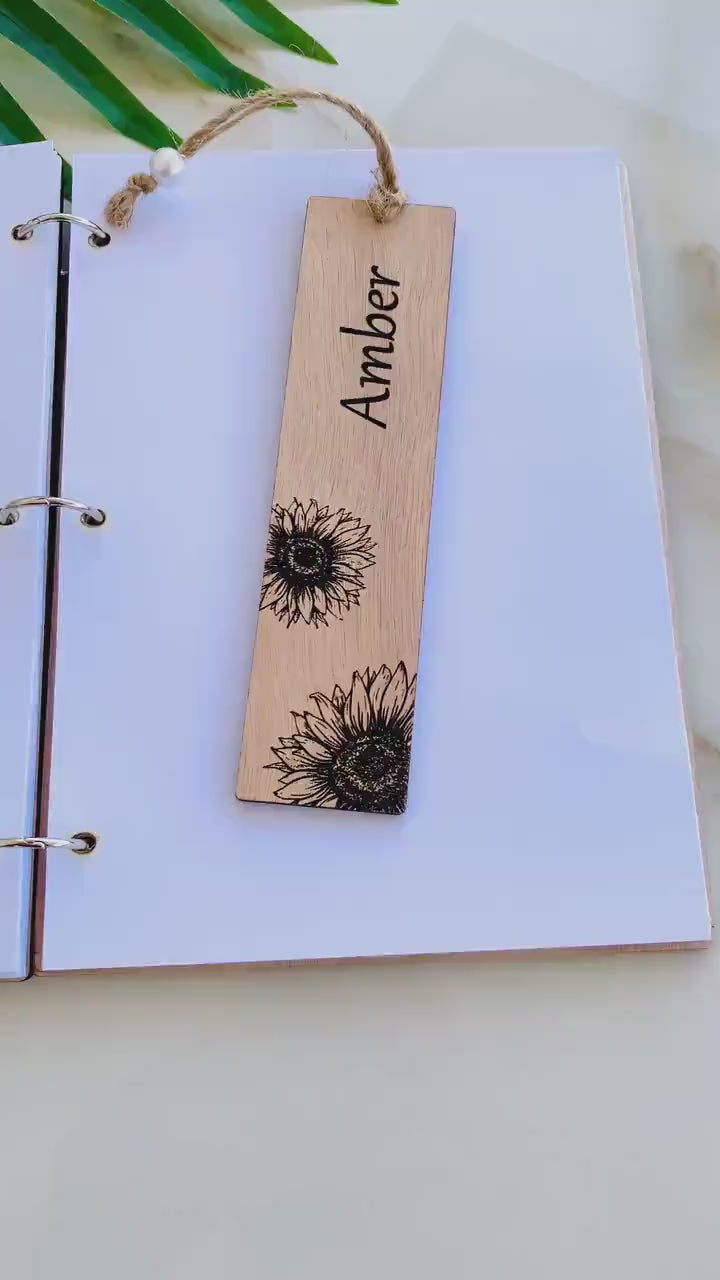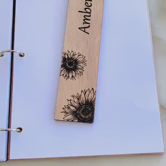 Personalized Sunflower Wooden Bookmark: Floral Engraved Gift