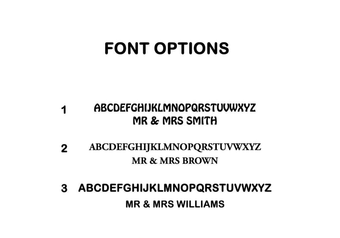 ** Please ensure you order the correct number of characters to avoid any mistakes or surprises upon delivery for your event. For example, for "MR & MRS SMITH," the total number of characters is 11, including the "&" symbol.