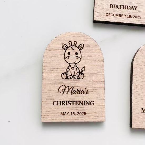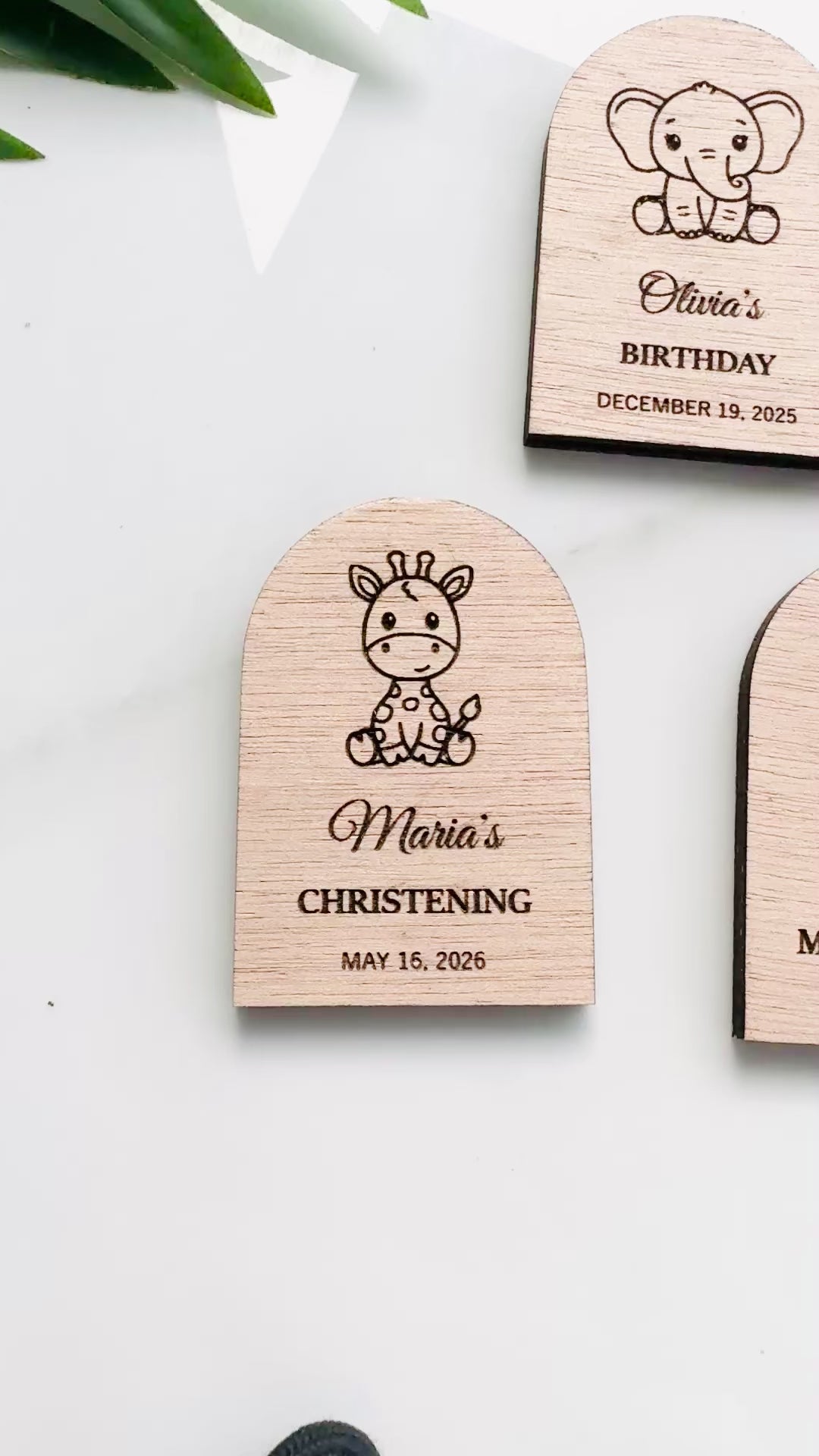 Perfect for baby showers, kids’ jungle-themed birthdays, christenings, or baptism guest gifts, these beautifully laser-engraved wooden favors are designed to be treasured long after the event.